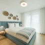 O mobiliário da cama estofada convida ao descanso e ao aconchego. Neste projeto Emme, cada elemento é uma promessa de harmonia, onde o quarto se torna um refúgio de amor e tranquilidade.